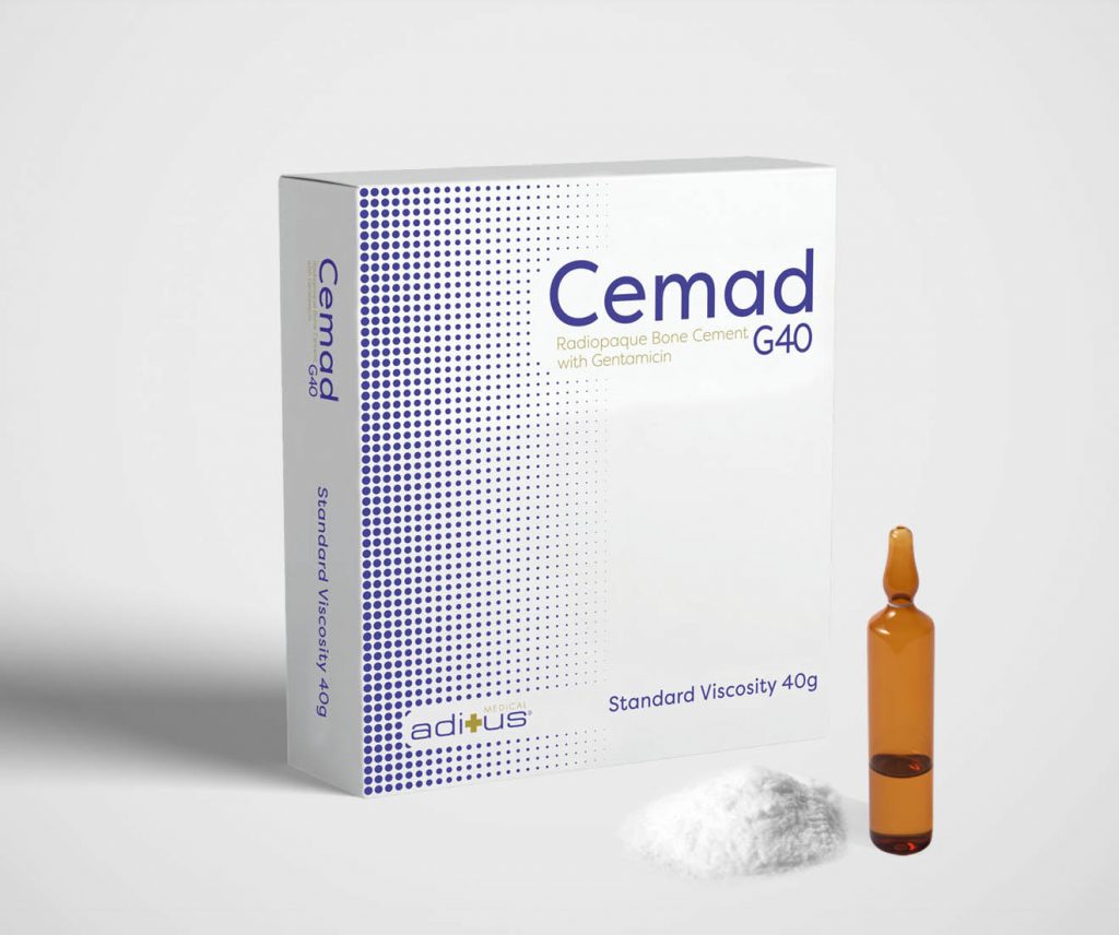 Cemad G40 Standard Viscosity Bone Cement with Gentamicin is a standard-viscosity, easy-to-apply bone cement developed for implant fixation in arthroplasty procedures. It provides high mechanical strength in accordance with the ISO 5833 standard.